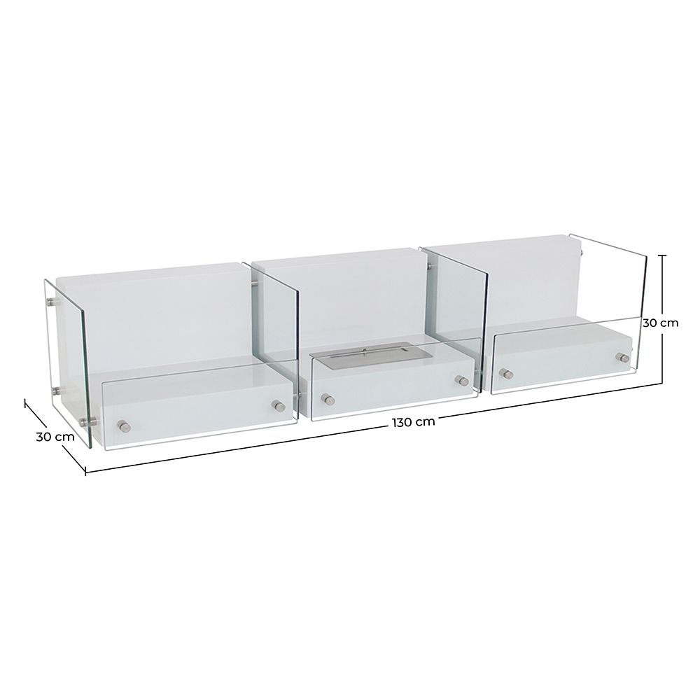 Extra information : Mural fireplace. 7 panes of security glass, resistant to high temperatures; 8 mounts, 9 screws.