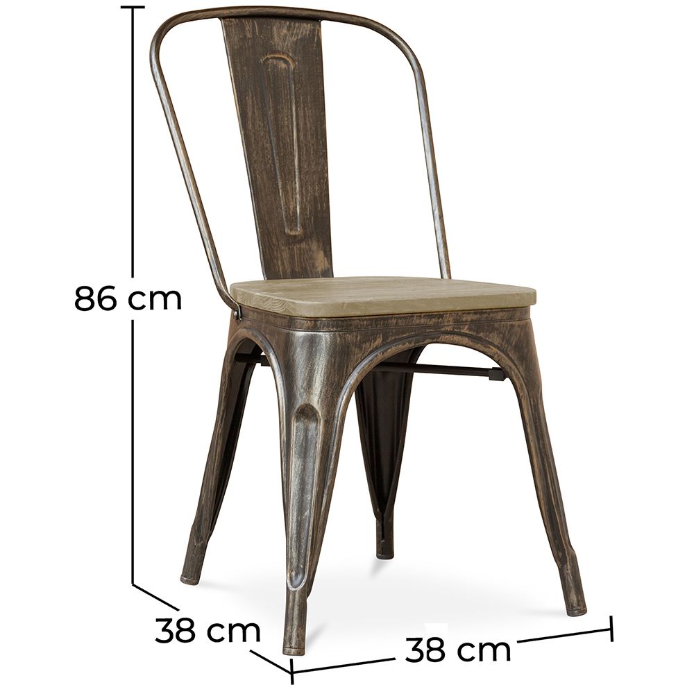 The Bistrot Metalix Style Chair uses these features, while at the same time, takes into account the need for lightness. This means you can quickly move it from point A to B if you choose to use it as a restaurant or bar chair. An X-shaped metal support below the wooden seat enhances the strength of the chair.