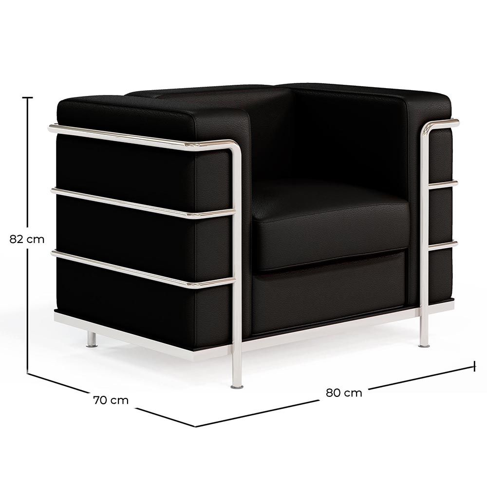 This designer armchair made of faux leather is perfect for offices, waiting rooms, and luxury hotels, combining sophisticated aesthetics with exceptional comfort and durability. The Bour armchair is upholstered in high-quality faux leather, which not only offers a luxurious appearance but is also durable and easy to clean. Its smooth and pleasant-to-touch texture adds a touch of luxury to any environment, while its wear resistance ensures that it will maintain its impeccable look over time. It features a chrome metal structure that adds a touch of elegance and ensures a solid and secure base, guaranteeing stability and the ability to withstand heavy use.