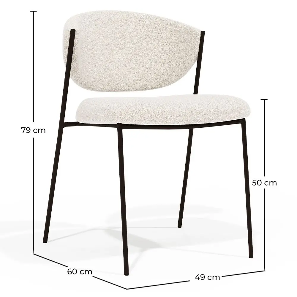 The Seda upholstered dining chair in Bouclé fabric with a metal structure is an elegant and versatile piece that combines functionality and style. Its sophisticated and contemporary design makes it a perfect choice for hotels, restaurants, as well as residential use in homes. The Bouclé fabric upholstery gives the chair a soft and cozy appearance while adding texture and dimension to the space. Bouclé is a durable and resistant fabric, ensuring a long lifespan for our design chair, even in high-traffic environments such as commercial establishments. Additionally, the metal structure provides a solid and stable base, ensuring the durability and strength of the chair.