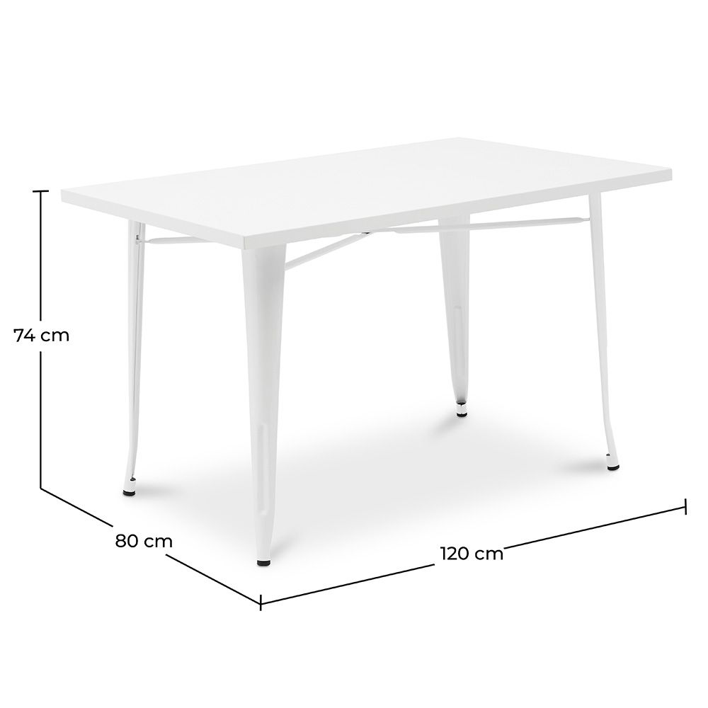 A sturdy dining table designed in Bistrot Metalix style. Ideal for an industrial or modern style interior or exterior, such as a bar or a restaurant, or a home. Made of steel, with a glossy finish. This indoor-outdoor table is a popular choice for those looking for durability and style.
