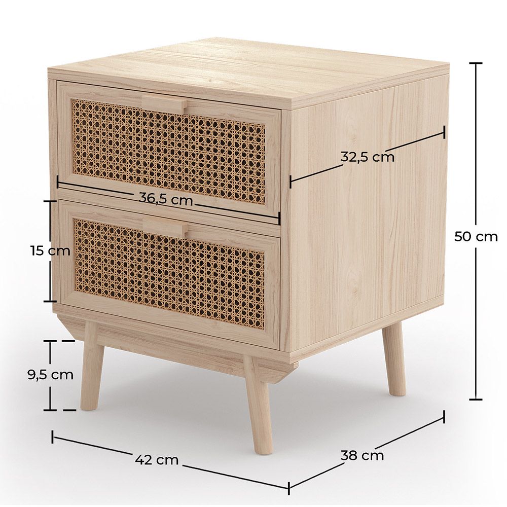 Rattan Bedside Table with Drawers, Boho Bali Style - Wada