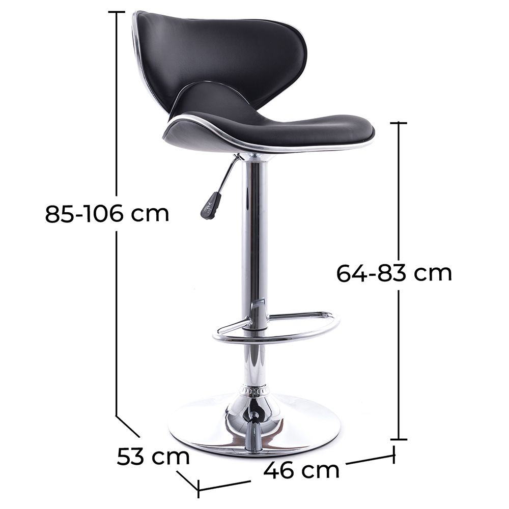 In addition to its classic design, this Curved Back bar stool is very practical as it not only has an internal gas mechanism that lets you adjust its height from eighty centimeters to one hundred centimeters, but also its seat made of polyurethane is rotatable, very durable and easy clean and maintain.