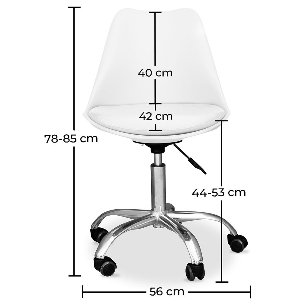 The Tulip office swivel chair is formed by a PP seat that incorporates a soft PU cushion attached to the seat for better comfort. This practical chair is height adjustable and the chromed metal base has 6 wheels so you can move around your work area without having to stand up. The back is smooth and ergonomic, which make this a very comfortable office chair.